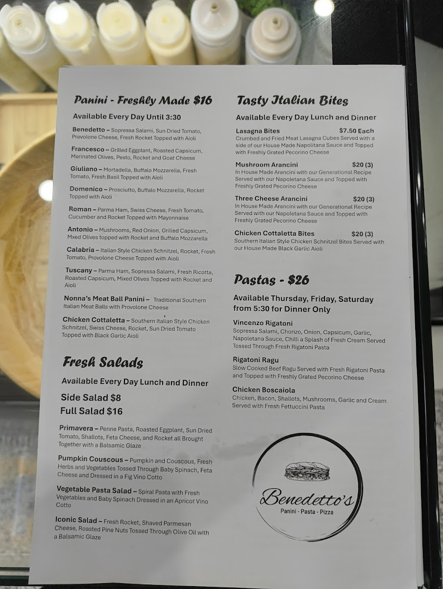 I originally made a review on trip advisor in January and my satisfaction has only improved since then. Benedetto is constantly refining, improving and listening to his customers. I have now been to Benedetto’s many times and I find it hard to stay away! One can not live on Pizza alone right? Wrong! This pizza also seems to be reasonably healthy due the quality of ingredients they use. All the sauce and bases are handmade. The base is now perfect, as it is just enough to support the generous quantity of quality toppings. My favourite is the vege lovers with some butterflied king prawns. Never disappoints and I always find it to be enough for two meals! As I eluded to earlier, the customer service is fantastic. I have had the privilege of sitting outside on many of the warm evenings we have had, soaking up the atmosphere as the sun goes down. The only downside is that it may be hard to get a table soon as it’s already buzzing with satisfied customers. Ian B